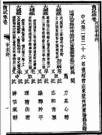 同治十年三甲60名进士。《会试朱卷》同治辛未科载有其试卷。